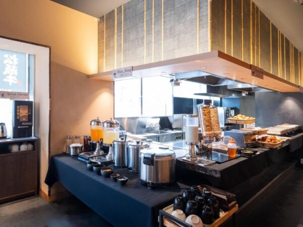 L’hôtel dispose d’un restaurant et d’un petit-déjeuner buffet proposé en supplément. Les fiches visibles mentionnent aussi les espaces utiles habituels sur ce type d’établissement, comme les distributeurs, le micro-ondes partagé et la laverie, ce qui renforce le côté pratique du séjour.