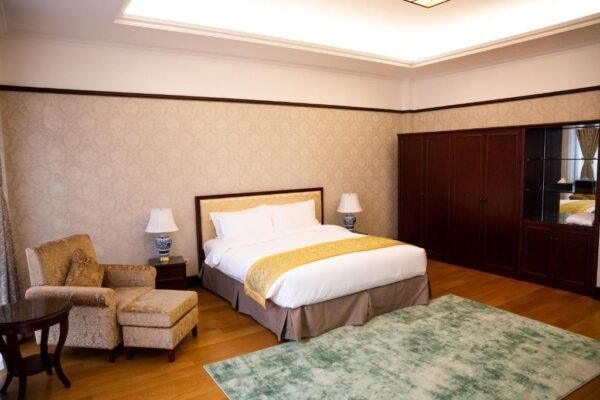 Colinas Hotel est une adresse contemporaine située sur l’axe de l’aéroport, dans le secteur de Malabo 2. L’établissement combine un positionnement “corporate” (réunions, déplacements rapides, services 24 h/24) et une vraie dimension détente grâce à ses piscines et ses espaces de loisirs. Le style est sobre, pensé pour l’efficacité et le confort, avec des chambres climatisées et des équipements orientés séjour pratique.