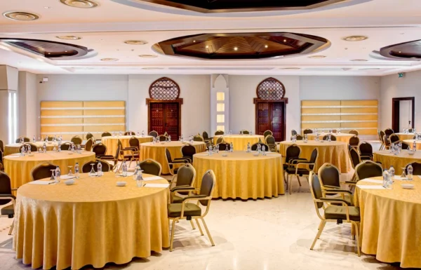 Corinthia Hotel Tripoli est dimensionné pour le MICE et les délégations: 7 salles de conférence et de banquet (dont de grands salons), boardrooms, et des espaces pensés pour événements corporate, réceptions et réunions stratégiques, avec services business dédiés.
