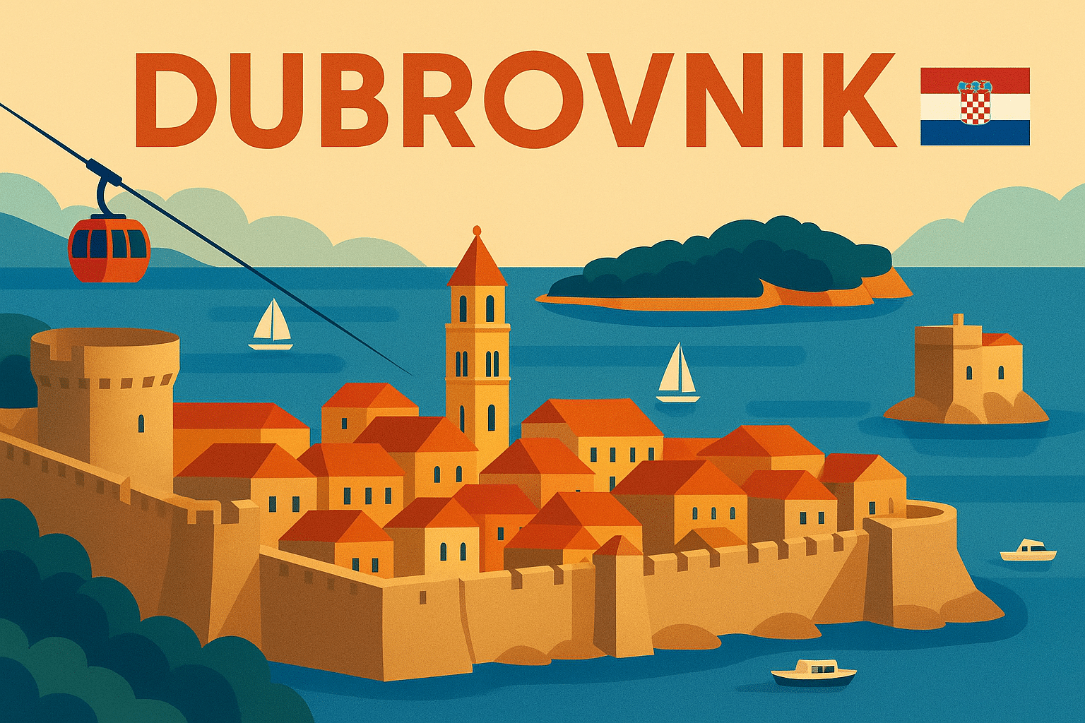 - Téléphérique du Srđ — Vue à 360° sur Dubrovnik et l’Adriatique.
