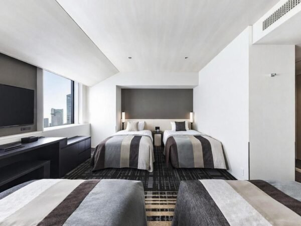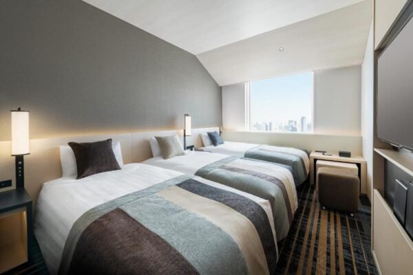 Les données recoupées indiquent des chambres climatisées avec Wi-Fi gratuit, télévision, ainsi que fer et table à repasser dans l’ensemble des 1 030 chambres. Le niveau de confort s’inscrit dans un registre contemporain et pratique, cohérent avec un grand hôtel urbain japonais récent, davantage tourné vers l’efficacité et le confort de séjour que vers le luxe démonstratif.