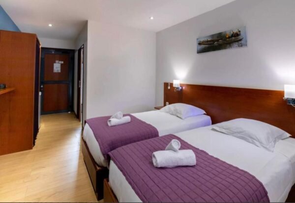 Les chambres comprennent notamment la climatisation réglable, le Wi-Fi haut débit, une télévision satellite, une cafetière et un réfrigérateur privé. Le site officiel mentionne également des chambres non-fumeurs, l’interdiction des animaux, une mise à disposition possible d’un fer et d’une table de repassage, ainsi qu’un service de laverie facturé à la machine. Sur une fiche SEO, ce sont des éléments utiles, car ils positionnent La Marina comme une adresse fonctionnelle autant pour les voyageurs de passage que pour les séjours un peu plus longs.
