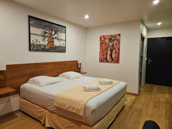 La Chambre Double est présentée comme adaptée aux couples, aux familles et aux professionnels en séjour à Kourou. Le site officiel précise aussi que ces chambres conviennent aux personnes à mobilité réduite. Elles disposent de la climatisation, d’un bureau, d’un placard, d’une salle d’eau avec baignoire ou douche à l’italienne avec WC, ainsi que d’une terrasse privative.