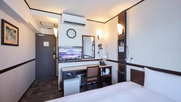 L’hôtel met en avant le Wi-Fi, la douche type rain shower, le nightwear et les équipements essentiels d’un hôtel de transit moderne. Les fiches partenaires mentionnent aussi la climatisation, une salle de bain privative, un coffre-fort et des équipements de base cohérents avec le segment économique japonais.