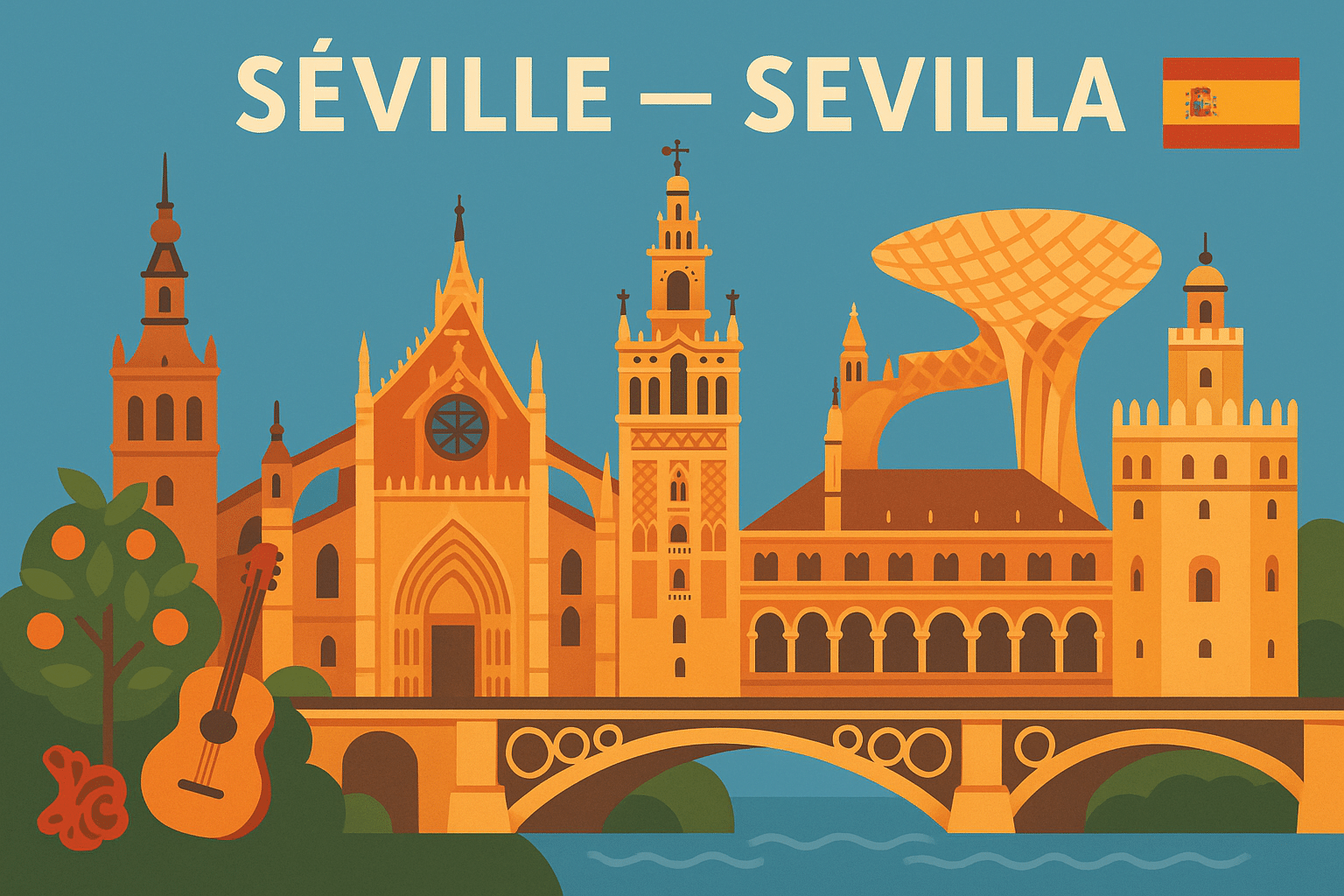 - Aéroport de Séville (SVQ) — Bus EA pour le centre, taxis et VTC disponibles.