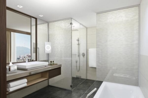 L’hôtel annonce 220 chambres et suites. Les unités sont présentées comme insonorisées et équipées pour les séjours business (coin assise, espace de travail).