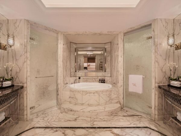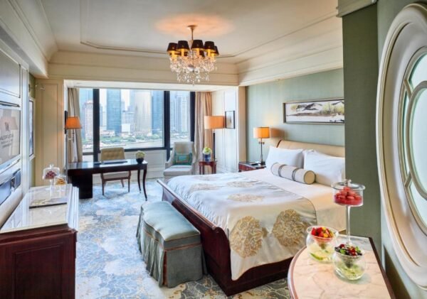 Waldorf Astoria Shanghai on the Bund est une adresse iconique du Bund, installée entre un bâtiment patrimonial (l’ancien Shanghai Club) et une tour contemporaine. L’expérience vise le grand classique: volumes généreux, marbre, service très cadré, et vues possibles sur le Huangpu et Pudong selon les catégories. L’établissement annonce 260 chambres et suites.